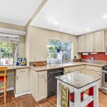 lighting and rear patio access, an updated kitchen with solid surface counters and gas range/oven, powder room, and inside laundry.